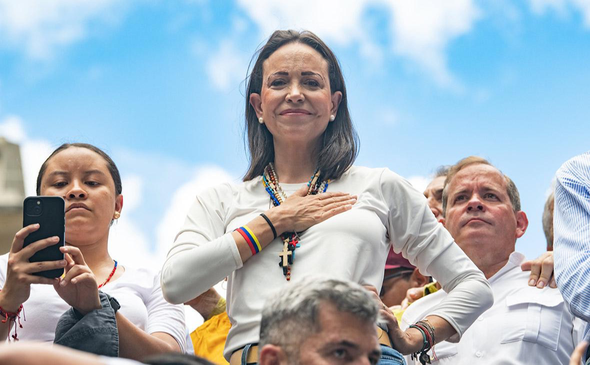 2023 оны Ерөнхийлөгчийн сонгуулийн кампани эхлэхийн өмнө Венесуэлийн иргэд түүнийг шинэ удирдагч хэмээн харж байв. Мариа Корина либерал бодлого, үндэсний газрын тосны компани PDVSA-г хувьчлах, авлигын сүлжээг таслахыг уриалж байсан ч 2024 оны эхээр түүнийг сонгуульд нэр дэвшихийг 15 жилийн хугацаагаар хориглох шийдвэрийг шүүх гаргасан юм. Гэсэн ч Корина дипломатч Эдмундо Гонсалес нэр дэвшигчийг дэмжиж, бүх сөрөг хүчнийг дахин нэгтгэж чадсан аж.